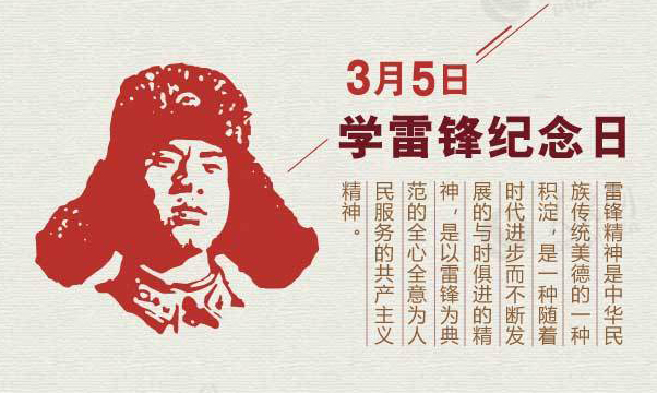 毛主席曾親筆題詞“向雷鋒同志學習”,并把每年的3月5日定為學雷鋒紀念日。習近平總書記也指出,雷鋒身上所具有的“信念的能量、大愛的胸懷、忘我的精神、進取的銳氣”,正是我們民族精神的最好寫照。