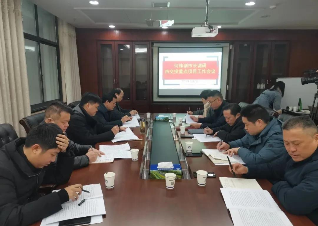 1月7日,副市長何鋒率市政府副秘書長鄒定源,市政府辦、市交通運輸局、市公路建設(shè)養(yǎng)護中心負責(zé)人到公司調(diào)研重點項目工作,集團公司黨委書記、董事長劉建,集團公司黨委副書記、總經(jīng)理、公司董事長陽文林出席,集團公司黨委委員、副總經(jīng)理、公司總經(jīng)理肖小波匯報項目建設(shè)工作。